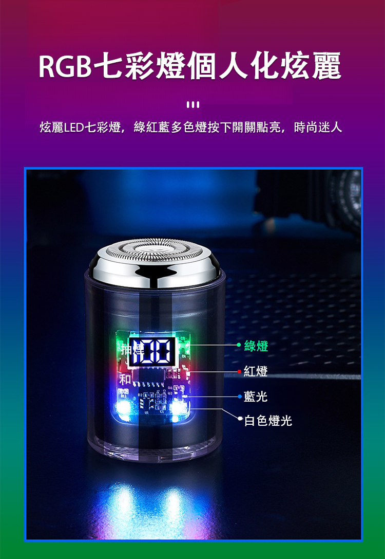 【酷炫彩燈】電動剃鬚小鋼炮
